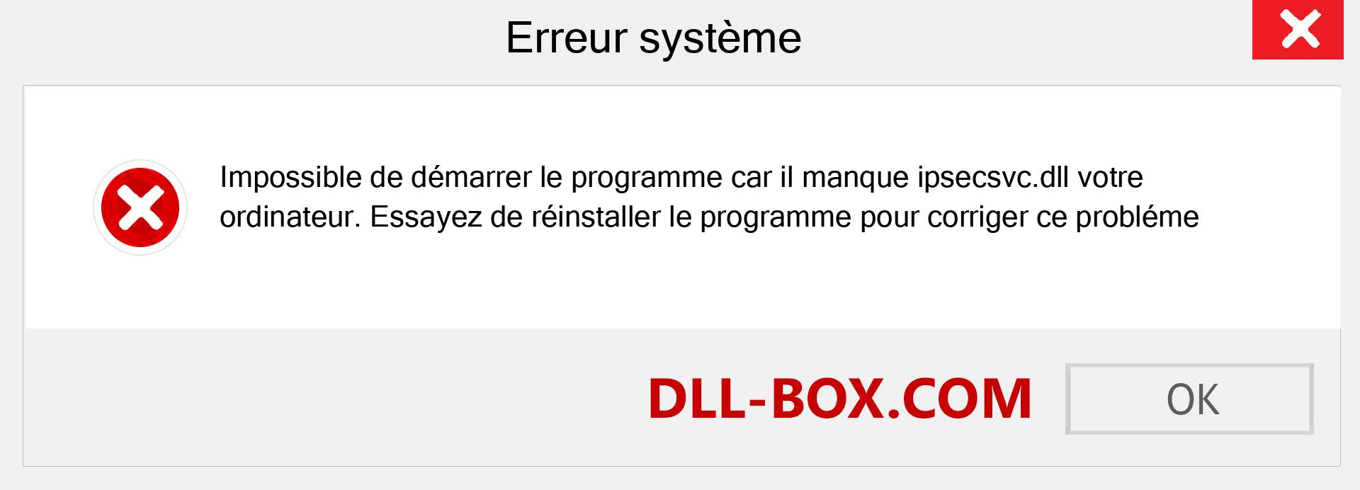 1. Le programme ne peut pas démarrer car ipsecsvc.dll est absent de votre ordinateur. Essayez de réinstaller le programme pour résoudre ce problème.